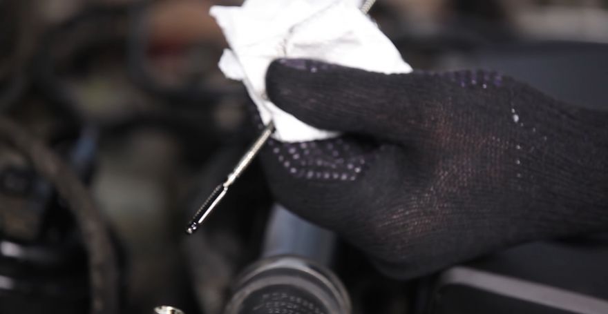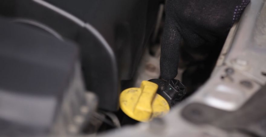 - Убедившись в достаточном уровне, процедуру замены можно завершить, и при необходимости протереть нижнюю часть машины от масляных подтеков.