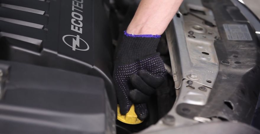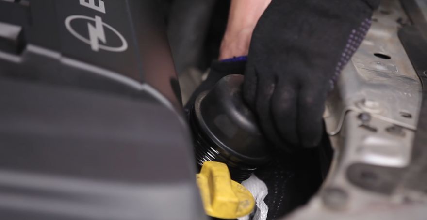 Теперь нам необходимо поменять масляный фильтр Опель Астра. Он расположен довольно удобно и добраться к нему не составит труда. Но в большинстве случаев декоративную крышку с двигателя придется снять. В нашем случае крышка масляного фильтра расположена вблизи маслозаливной горловины.