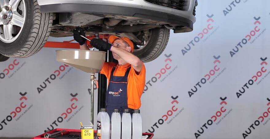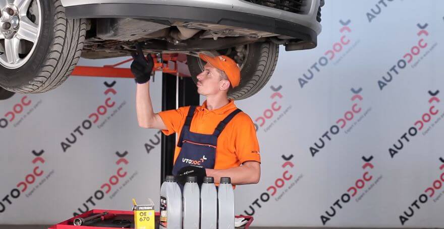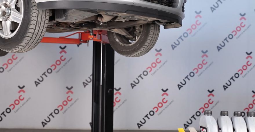 Сначала машину нужно установить яму, пандус, эстакаду, подъемник или домкрат с упорами в передней части. Разумеется, со всеми мерами предосторожности. Если доступ к масляному поддону закрыт защитой, ее понадобится снять.