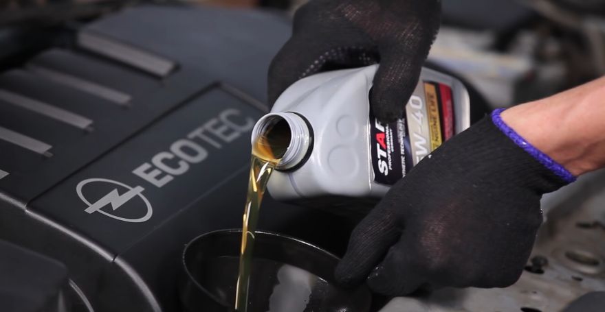 Теперь можно заливать новое масло в двигатель, при чем лить весь требуемый объем сразу не стоит. Лучше слегка не долить, чем перелить масло. Поэтому, залив немногим меньше нужного заправочного объем, следует закрутить крышку и запустить двигатель. Спустя несколько минут работы, заглушить мотор и выждать минут 5-10, пока масло стекает в поддон. После этого идет проверка уровня масла по щупу — уровень должен быть между метками, ближе к верхней.